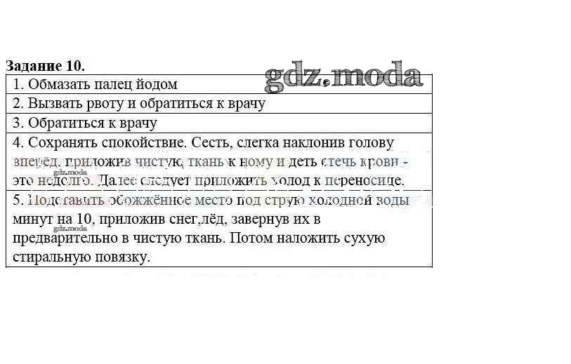 ОТВЕТ на задание № 10 Рабочая тетрадь по ОБЖ 5 класс Драновская