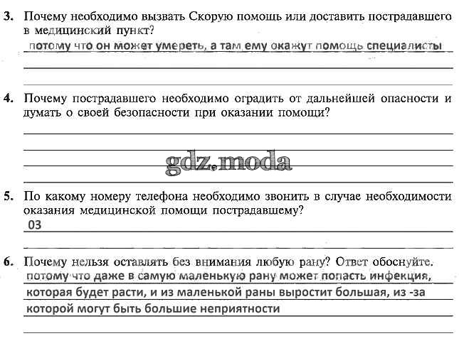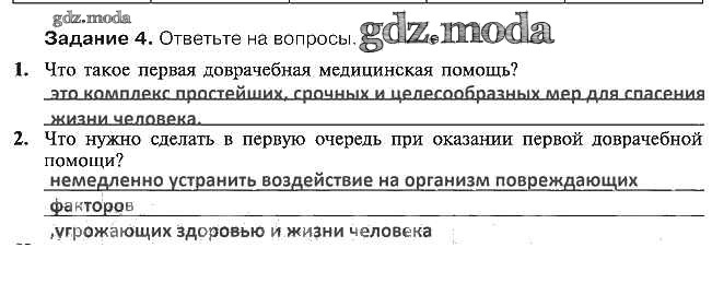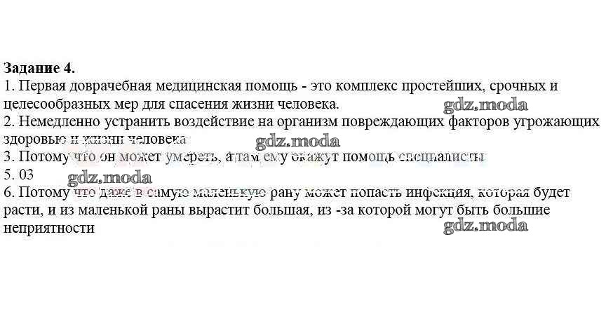ОТВЕТ на задание № 4 Рабочая тетрадь по ОБЖ 5 класс Драновская