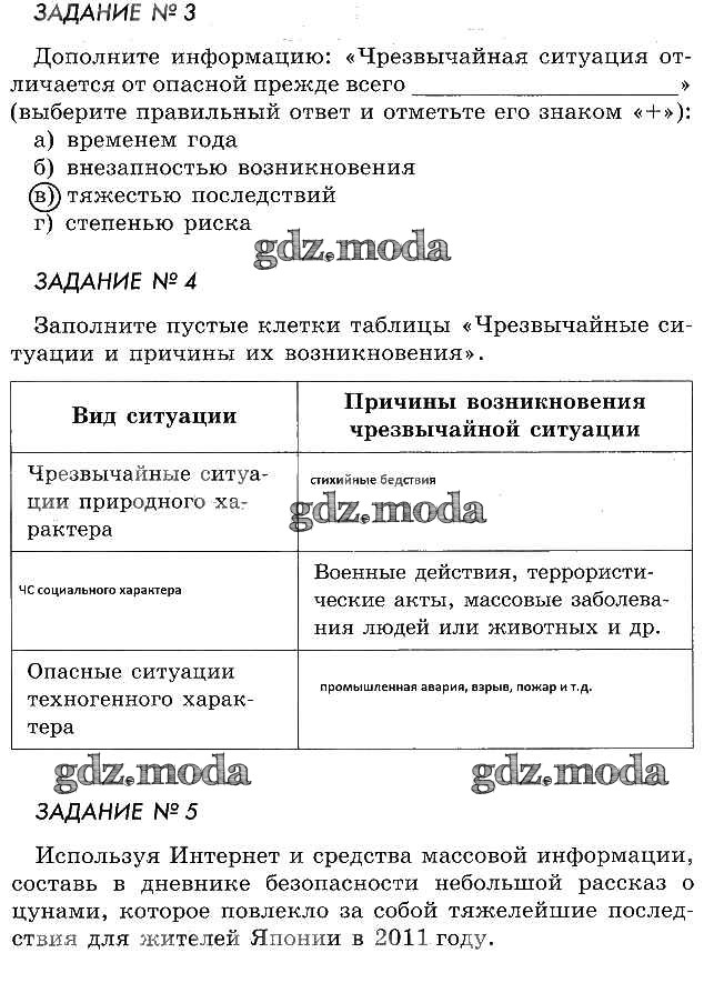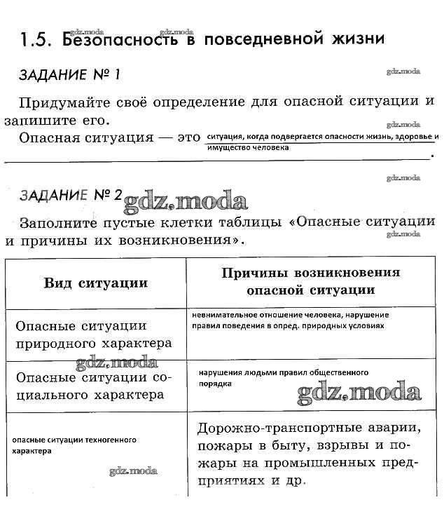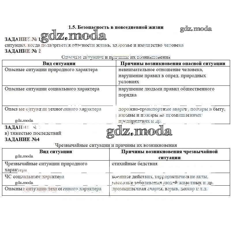 ОТВЕТ на задание № §5 Рабочая тетрадь по ОБЖ 5 класс Смирнов