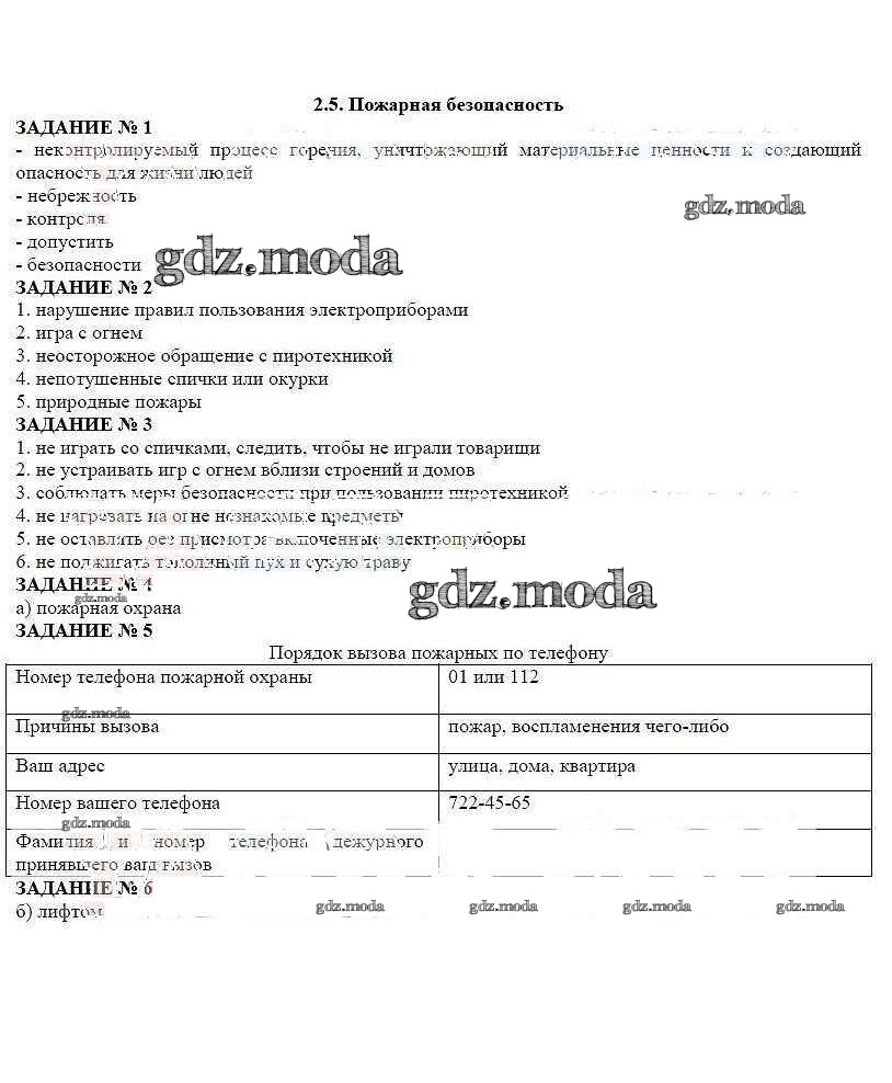 ГДЗ решение к заданию № §5 ОБЖ 5 класс рабочая тетрадь Смирнов А.Т. Просвещение 2019 ФГОС бесплатно на гдз.мода!