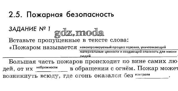 ОТВЕТ на задание № §5 Рабочая тетрадь по ОБЖ 5 класс Смирнов