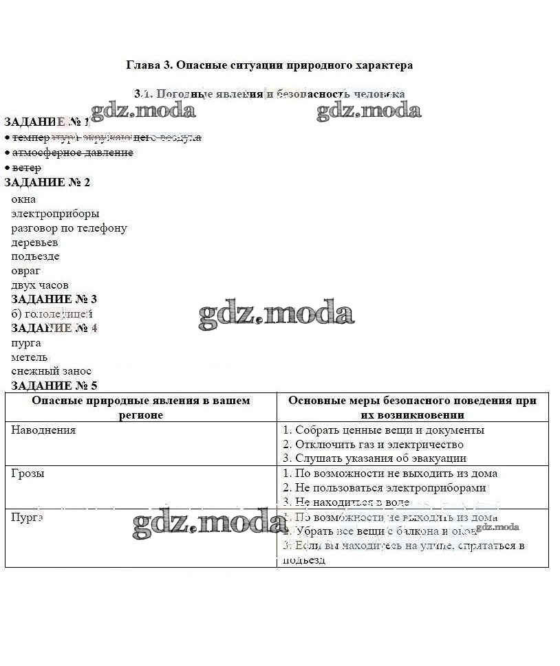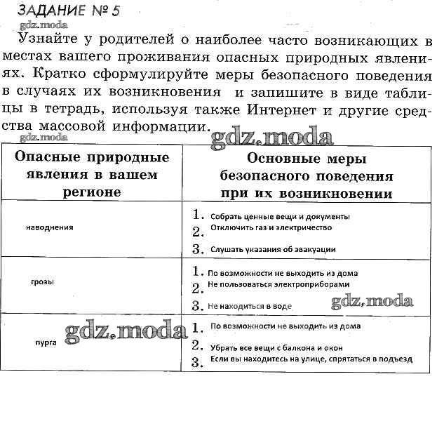ОТВЕТ на задание № §1 Рабочая тетрадь по ОБЖ 5 класс Смирнов