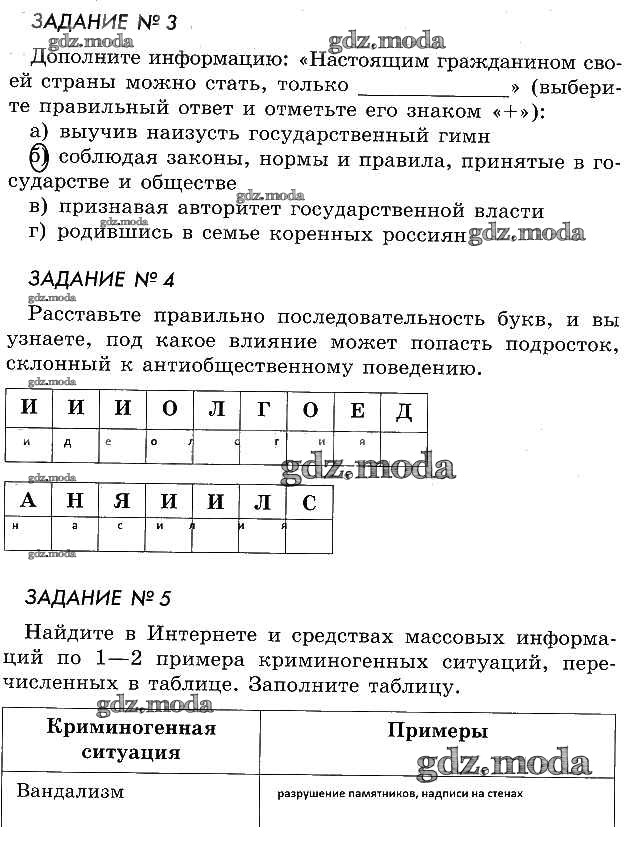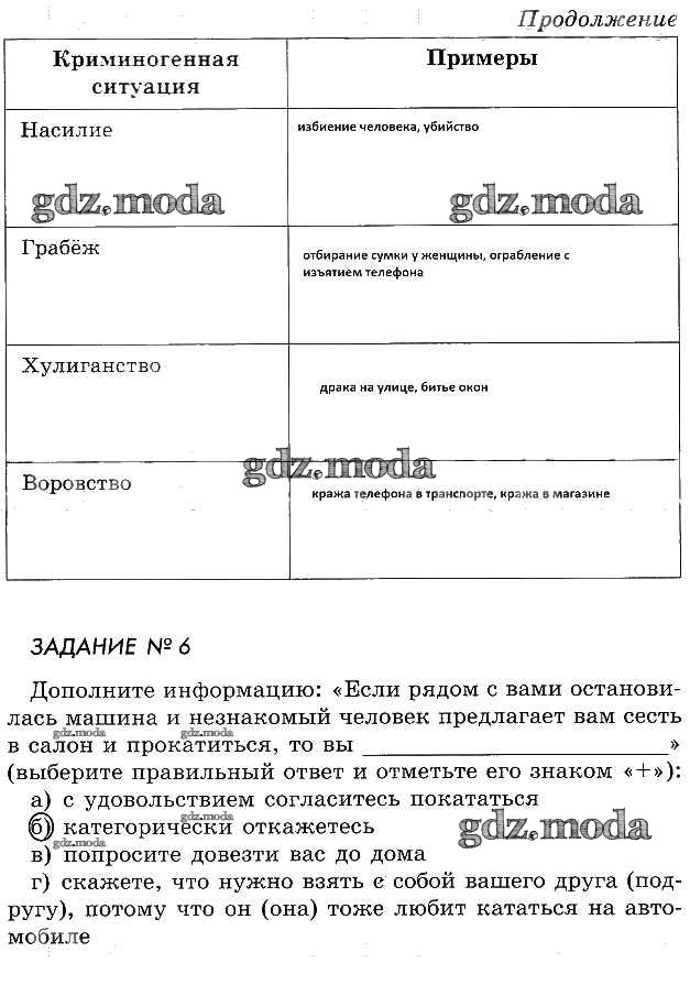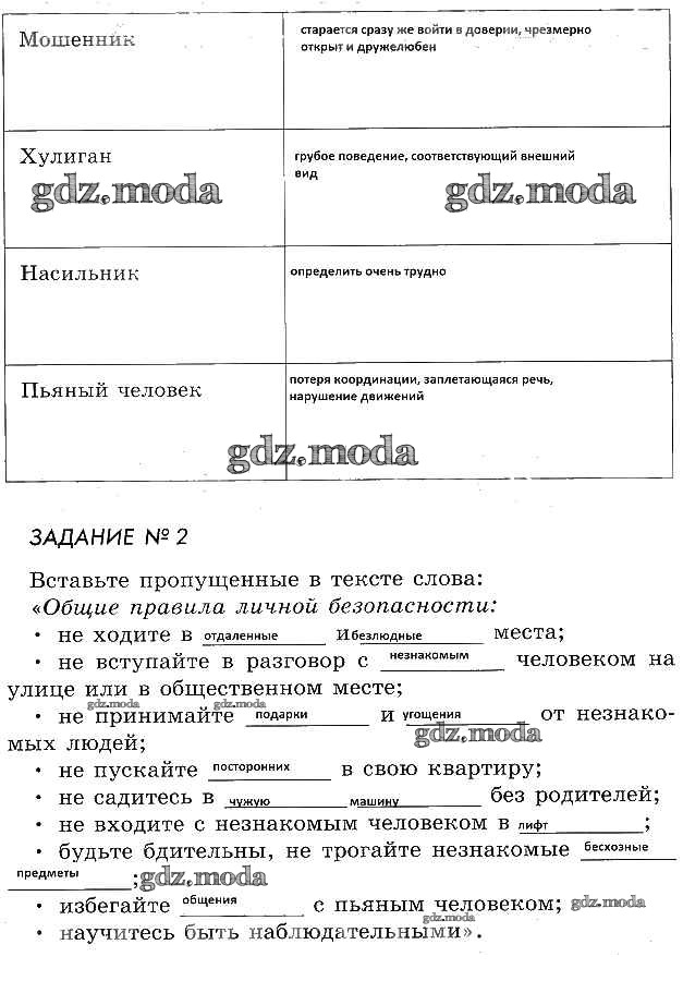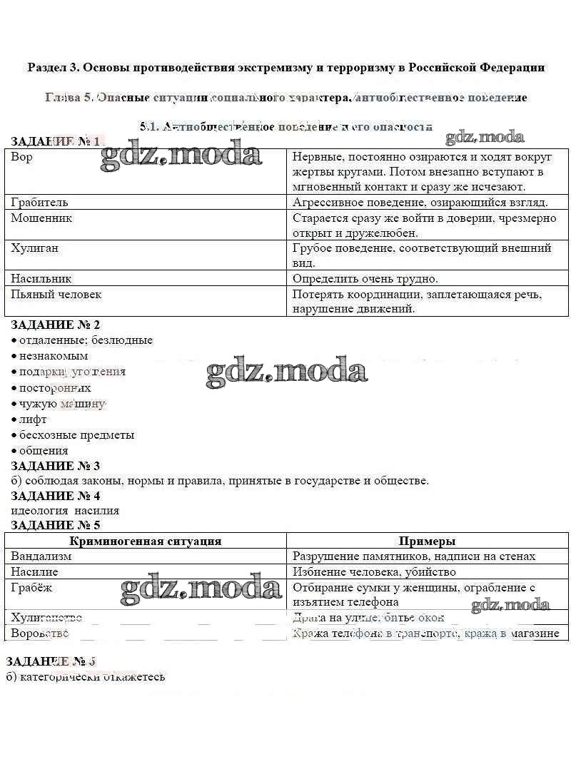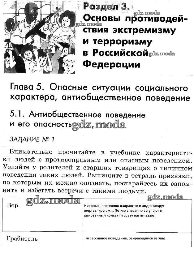 ОТВЕТ на задание № §1 Рабочая тетрадь по ОБЖ 5 класс Смирнов