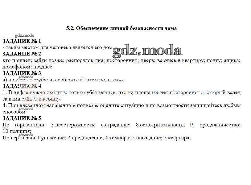 ОТВЕТ на задание № §2 Рабочая тетрадь по ОБЖ 5 класс Смирнов