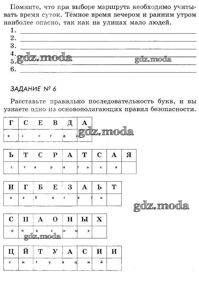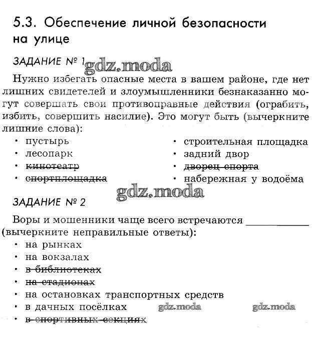 ОТВЕТ на задание № §3 Рабочая тетрадь по ОБЖ 5 класс Смирнов