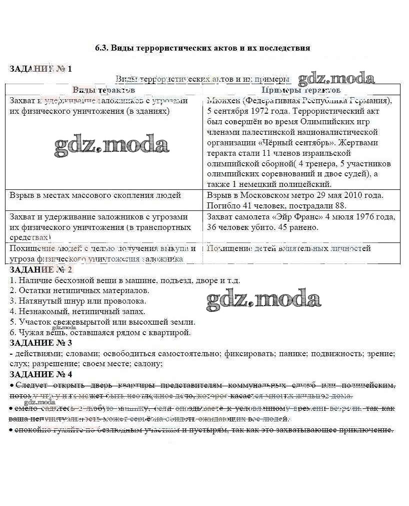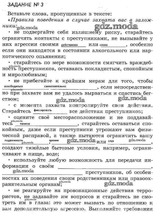 ГДЗ решение к заданию № §3 ОБЖ 5 класс рабочая тетрадь Смирнов А.Т. Просвещение 2019 ФГОС бесплатно на гдз.мода!