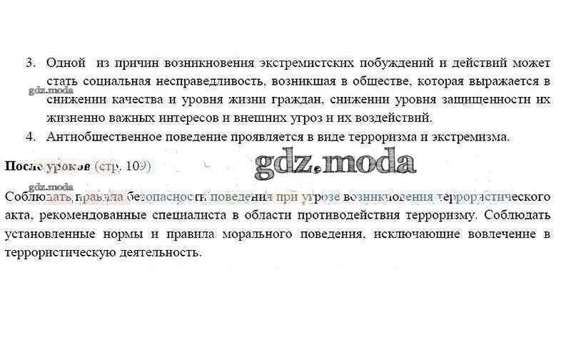 ОТВЕТ на задание № 110 Учебник по ОБЖ 5 класс Смирнов