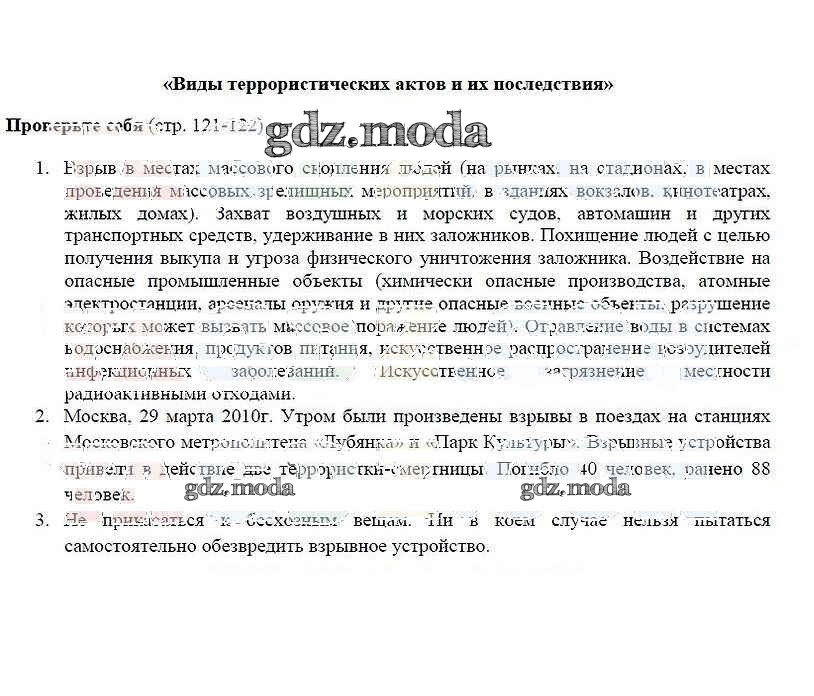 ГДЗ решение к заданию № 121-122 ОБЖ 5 класс Смирнов А.Т. Просвещение 2016 ФГОС бесплатно на гдз.мода!