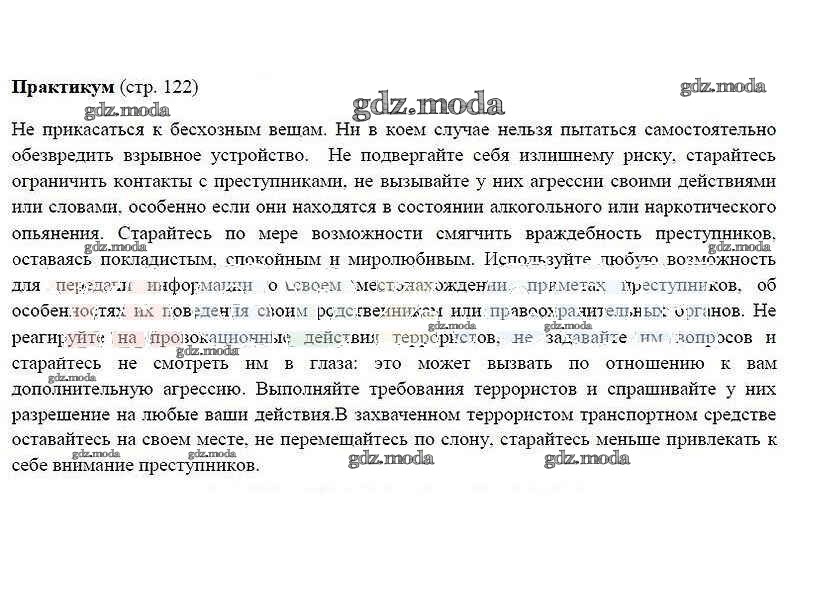 ГДЗ решение к заданию № 122 ОБЖ 5 класс Смирнов А.Т. Просвещение 2016 ФГОС бесплатно на гдз.мода!