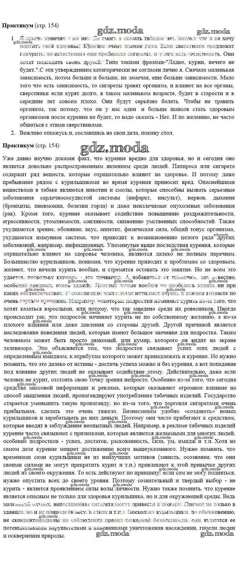 ГДЗ решение к заданию № 154 ОБЖ 5 класс Смирнов А.Т. Просвещение 2016 ФГОС бесплатно на гдз.мода!
