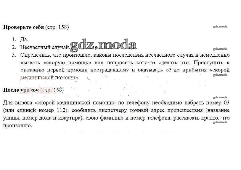 ГДЗ решение к заданию № 158 ОБЖ 5 класс Смирнов А.Т. Просвещение 2016 ФГОС бесплатно на гдз.мода!