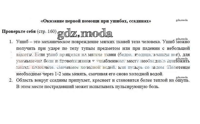 ГДЗ решение к заданию № 160 ОБЖ 5 класс Смирнов А.Т. Просвещение 2016 ФГОС бесплатно на гдз.мода!