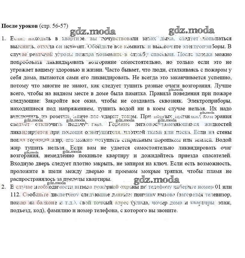 ОТВЕТ на задание № 56-57 Учебник по ОБЖ 5 класс Смирнов