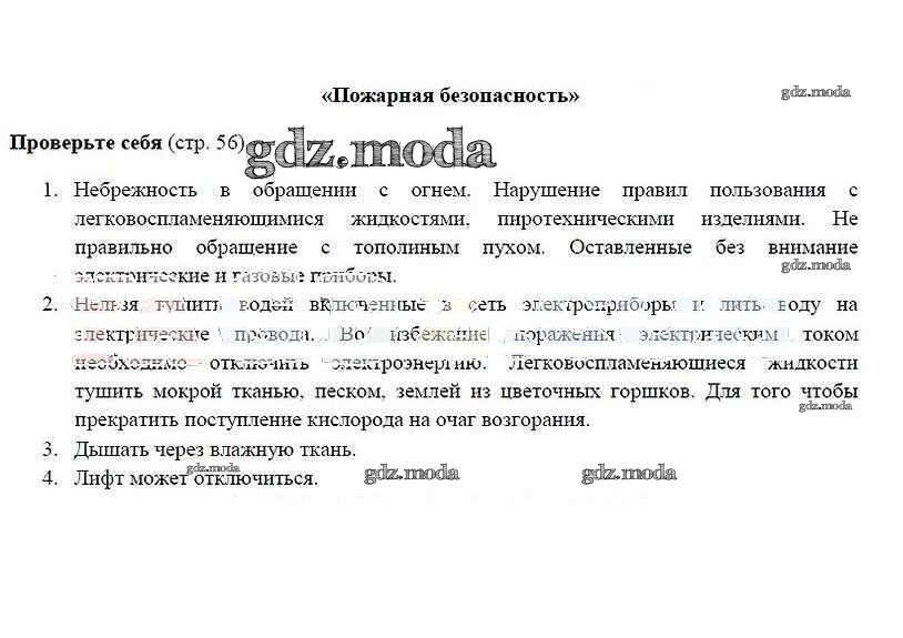 ГДЗ решение к заданию № 56-57 ОБЖ 5 класс Смирнов А.Т. Просвещение 2016 ФГОС бесплатно на гдз.мода!