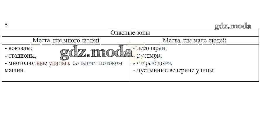 ГДЗ решение к заданию № 5 ОБЖ 5 класс тетрадь для оценки качества знаний Латчук В.Н. Дрофа 2019 ФГОС бесплатно на гдз.мода!