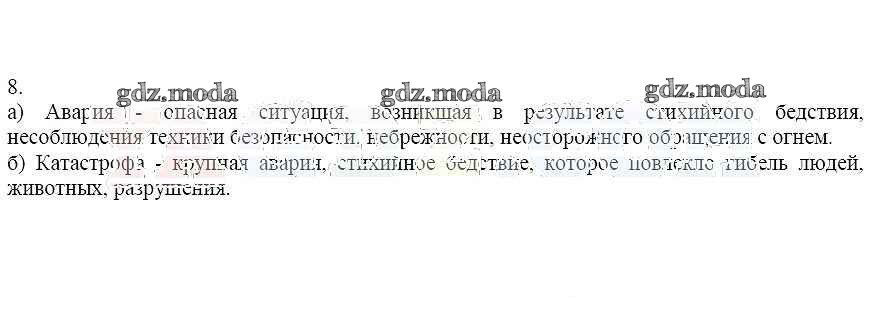 ГДЗ решение к заданию № 8 ОБЖ 5 класс тетрадь для оценки качества знаний Латчук В.Н. Дрофа 2019 ФГОС бесплатно на гдз.мода!