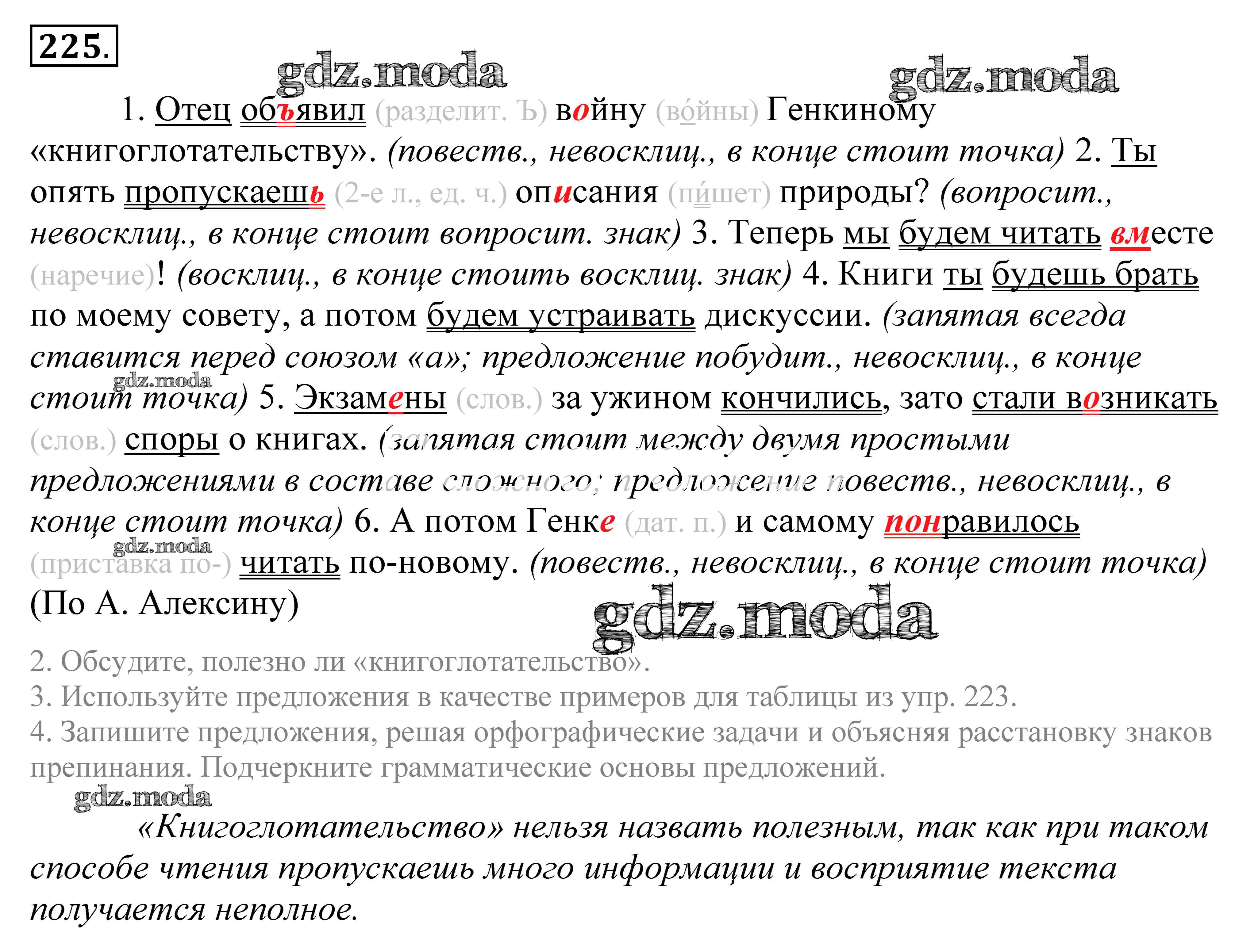 ГДЗ решение к заданию № 225 Русский язык 5 класс Купалова Дрофа 2015 ФГОС бесплатно на гдз.мода!