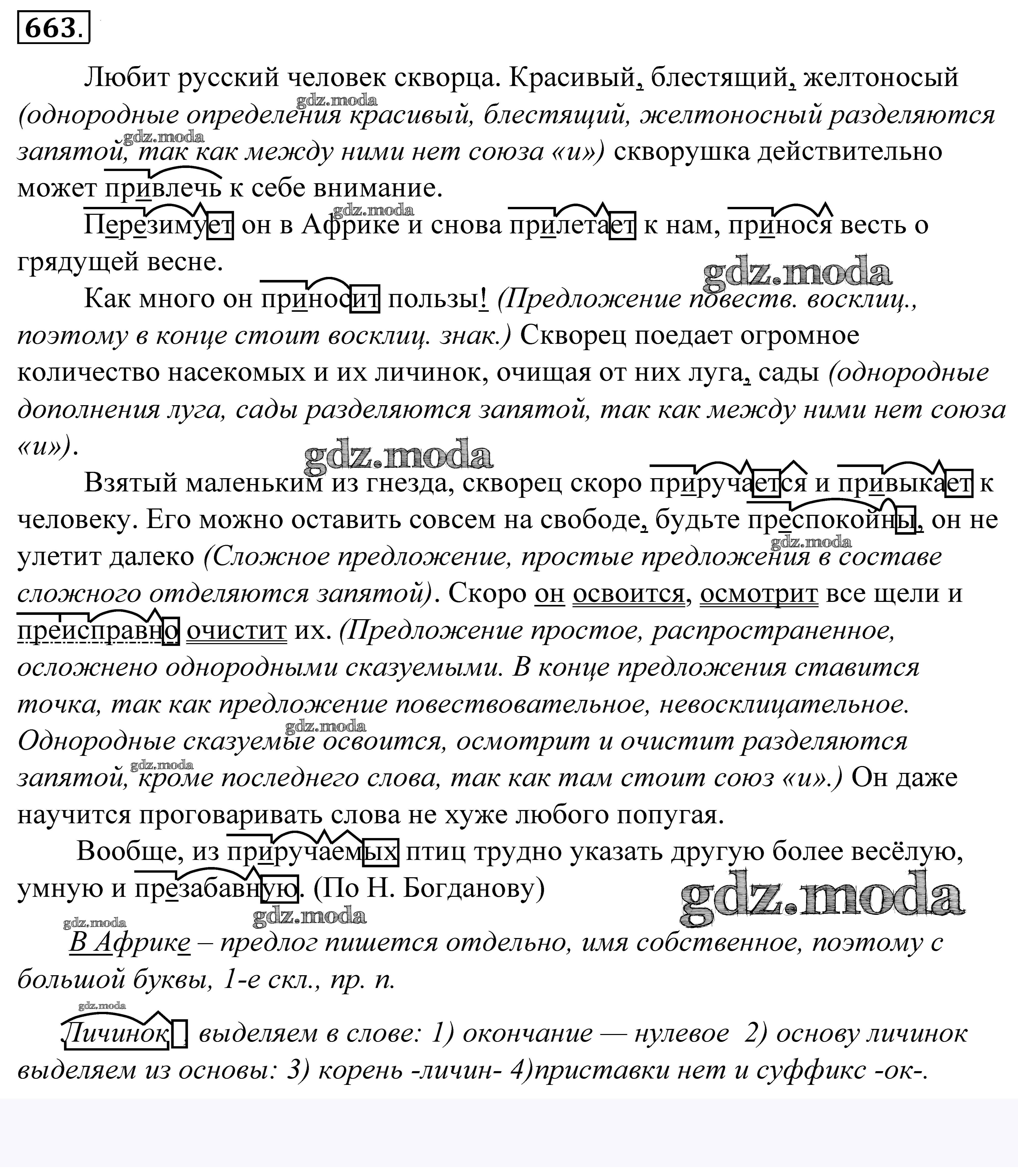 ГДЗ решение к заданию № 663 Русский язык 5 класс Купалова Дрофа 2015 ФГОС бесплатно на гдз.мода!