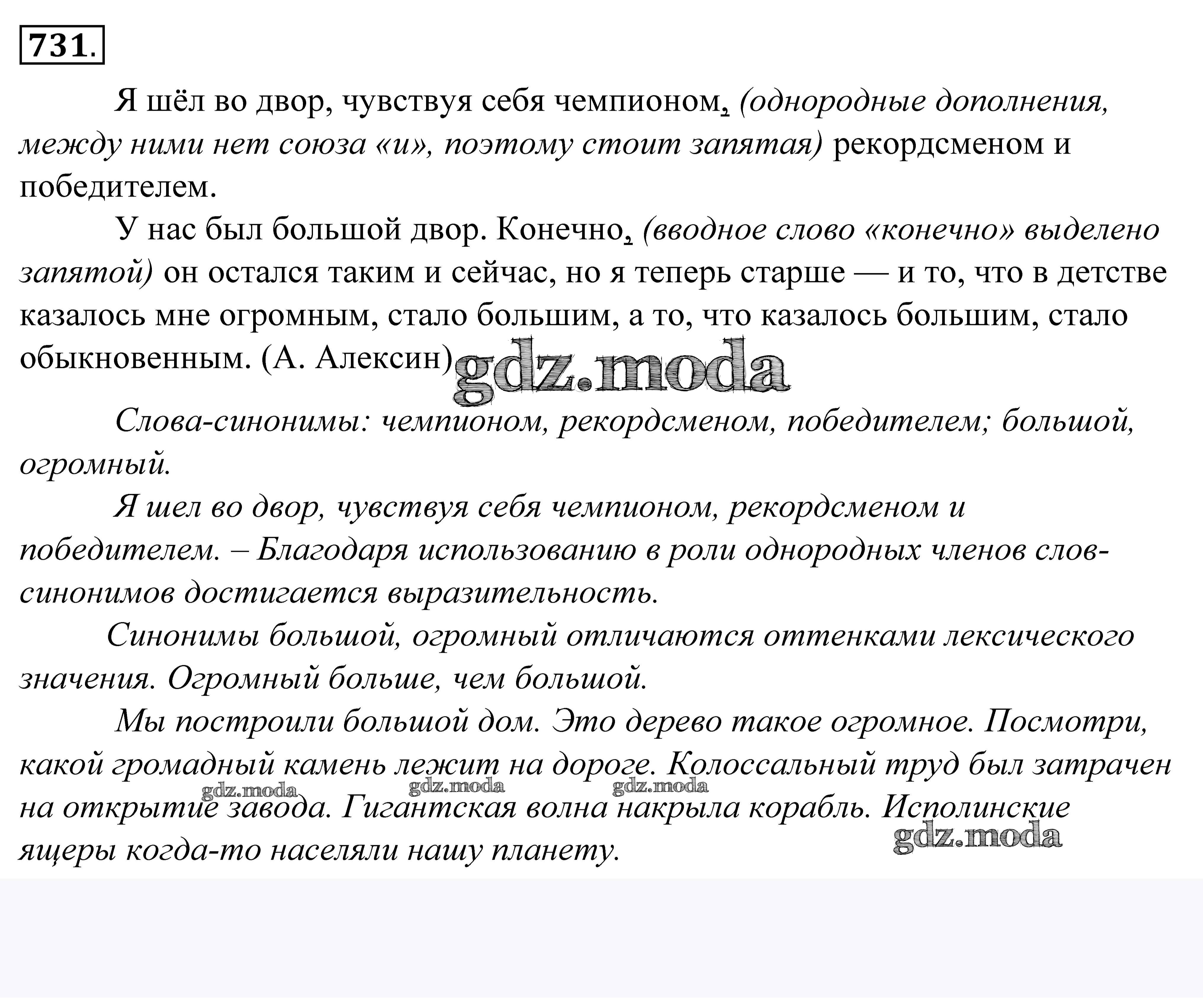 ОТВЕТ на задание № 731 Учебник по Русскому языку 5 класс Купалова