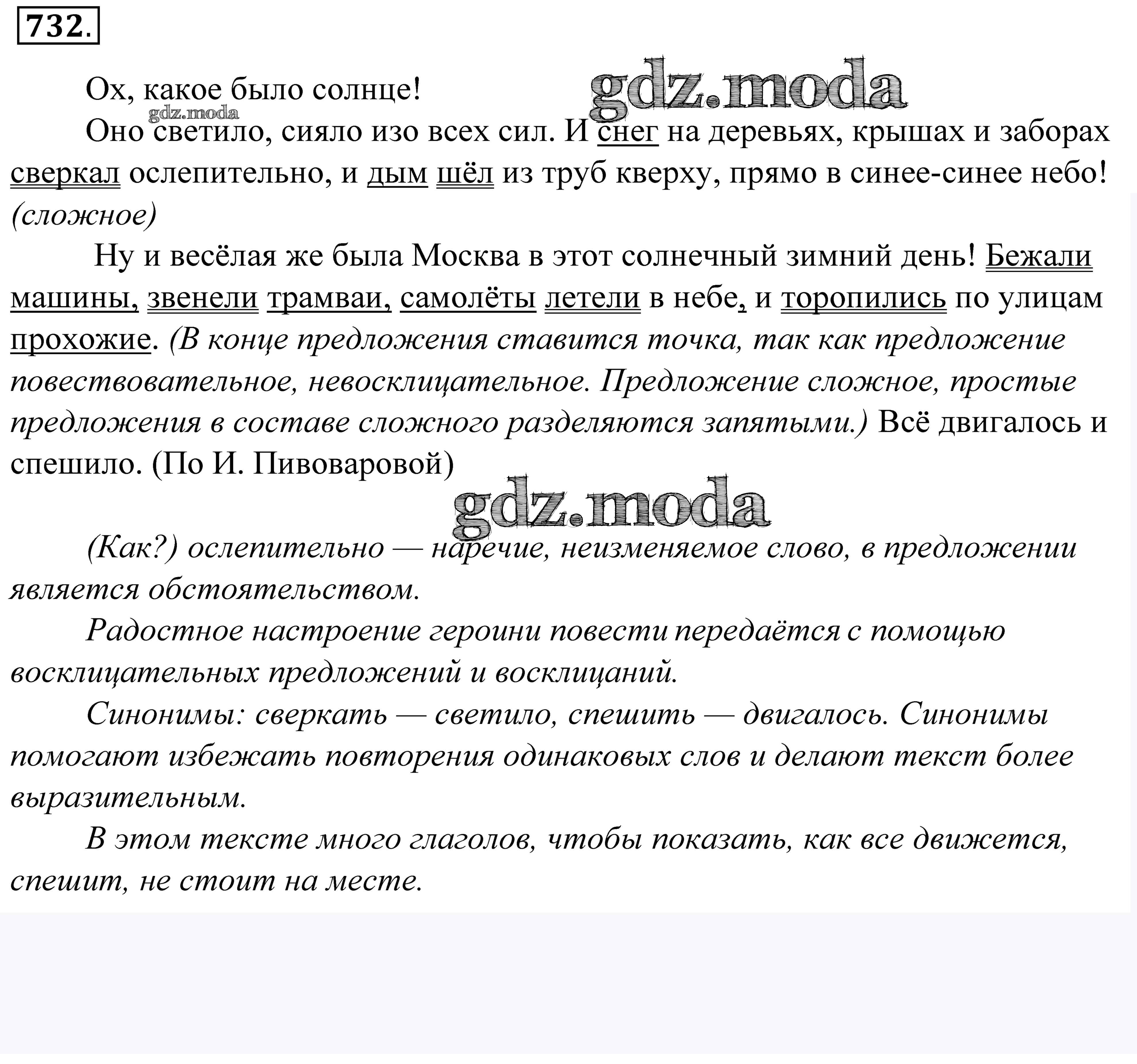 ГДЗ решение к заданию № 732 Русский язык 5 класс Купалова Дрофа 2015 ФГОС бесплатно на гдз.мода!