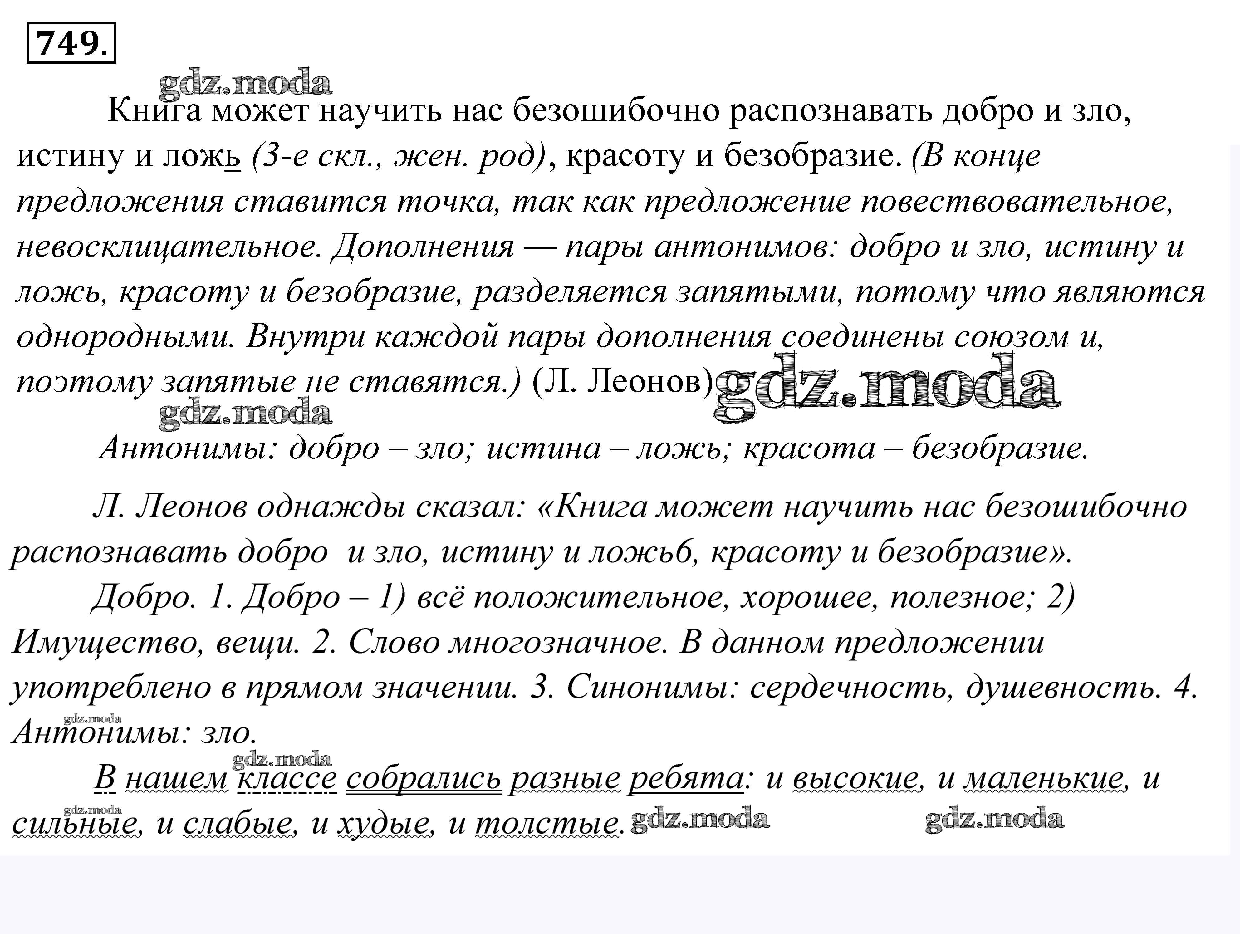 ОТВЕТ на задание № 749 Учебник по Русскому языку 5 класс Купалова