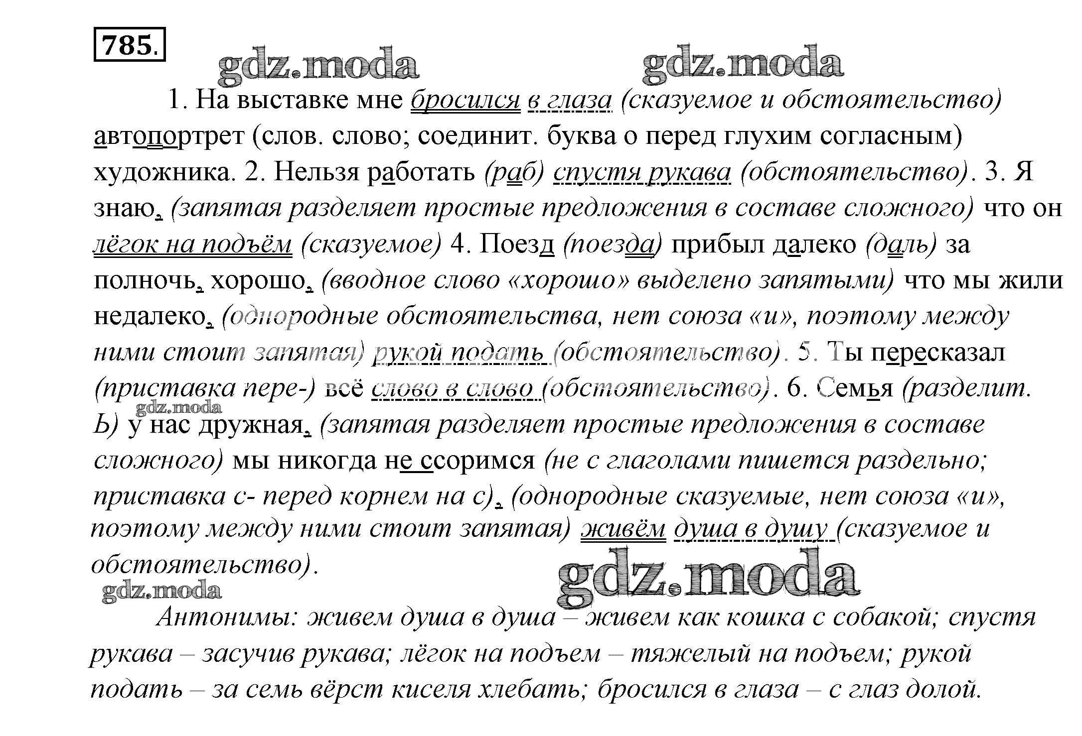 ОТВЕТ на задание № 785 Учебник по Русскому языку 5 класс Купалова