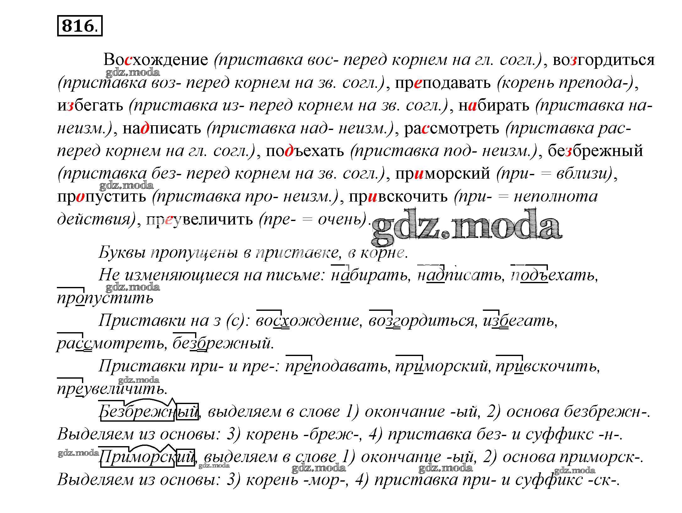 ГДЗ решение к заданию № 816 Русский язык 5 класс Купалова Дрофа 2015 ФГОС бесплатно на гдз.мода!