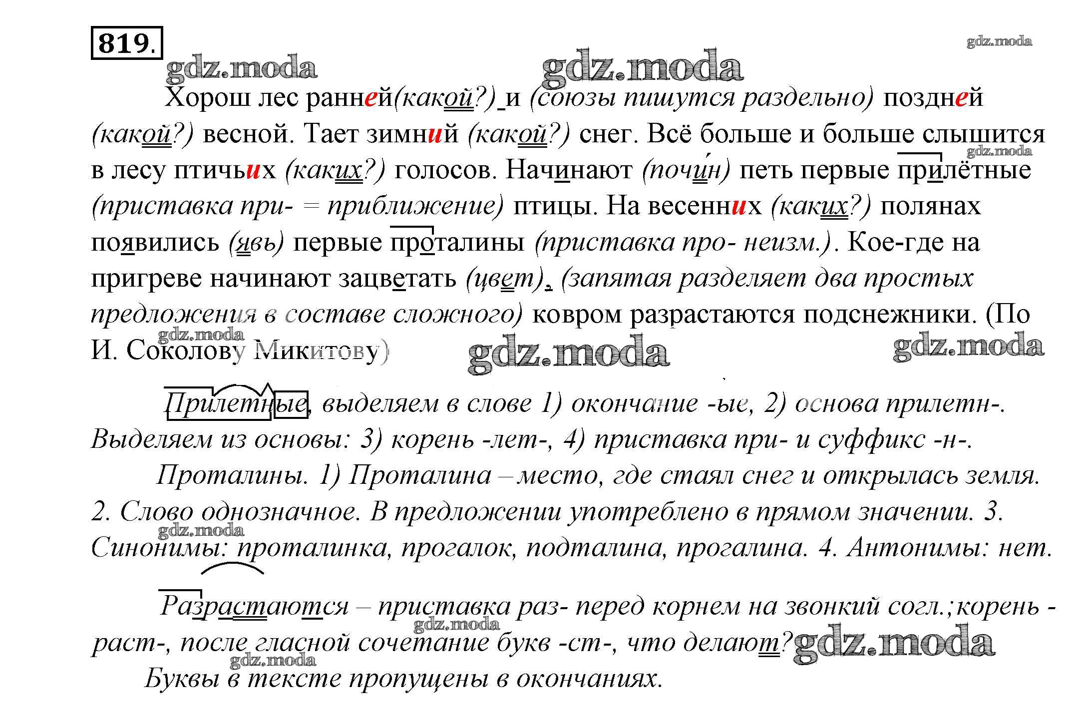 ОТВЕТ на задание № 819 Учебник по Русскому языку 5 класс Купалова