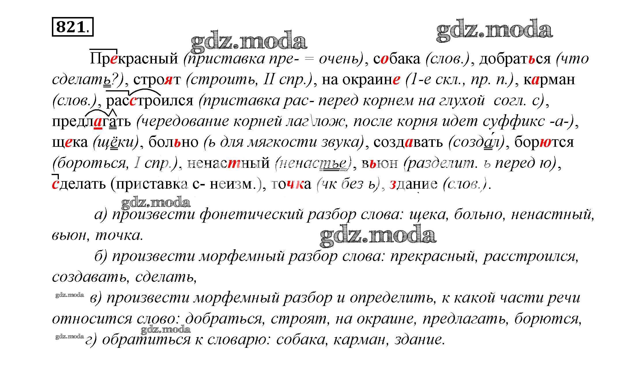 ОТВЕТ на задание № 821 Учебник по Русскому языку 5 класс Купалова