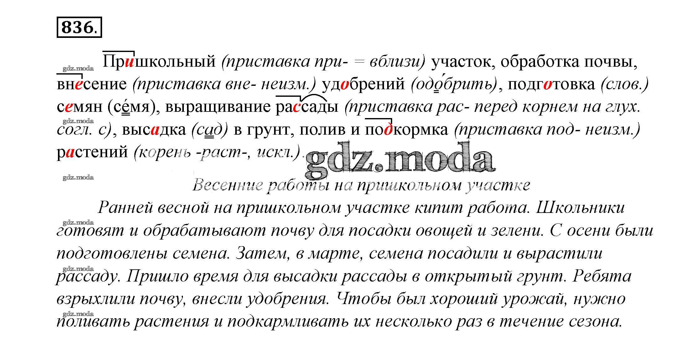 ОТВЕТ на задание № 836 Учебник по Русскому языку 5 класс Купалова