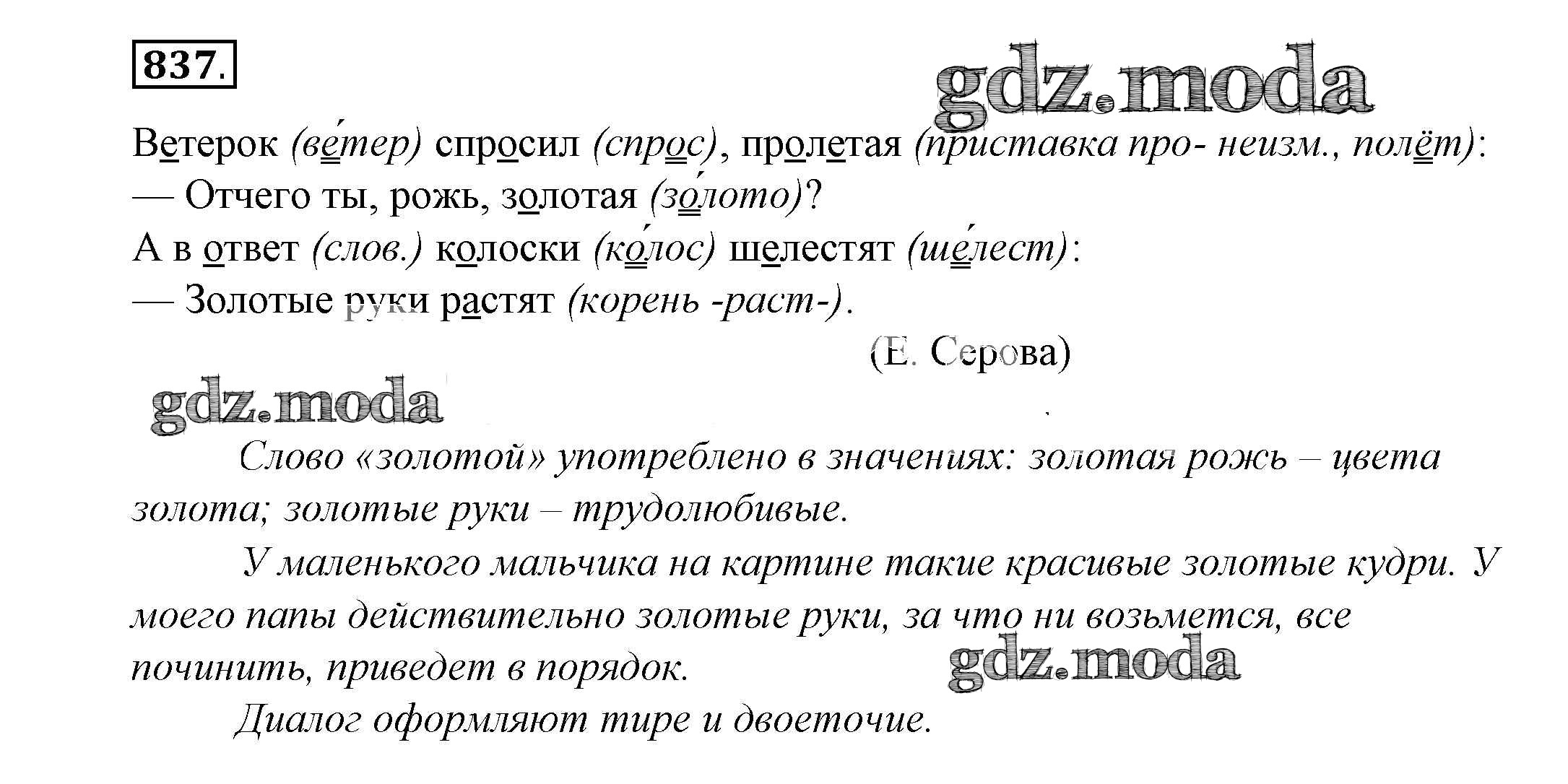 ОТВЕТ на задание № 837 Учебник по Русскому языку 5 класс Купалова