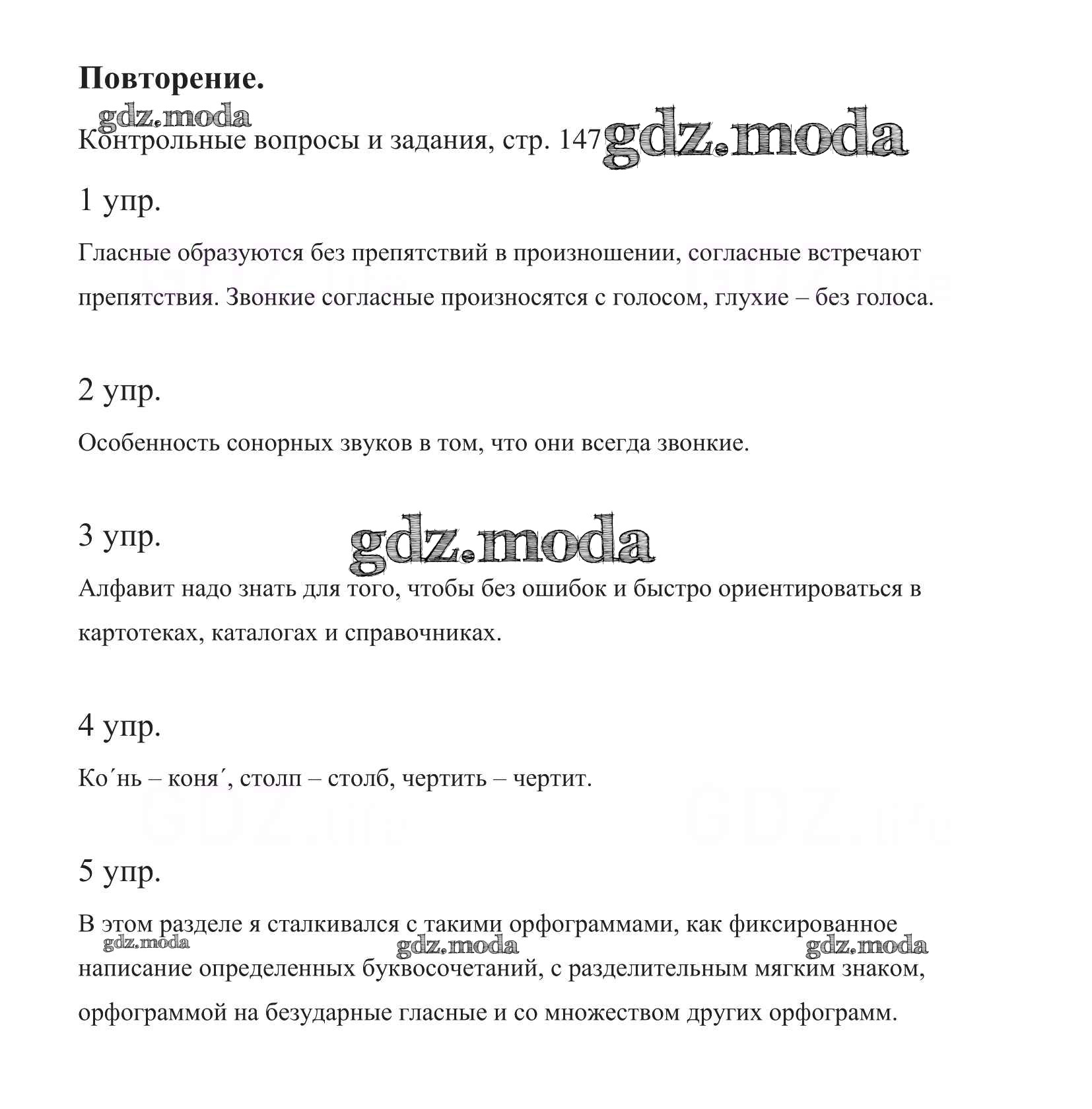 часть 1. упражнение / повторение. контрольный вопрос и задание / стр.147 (164-165)