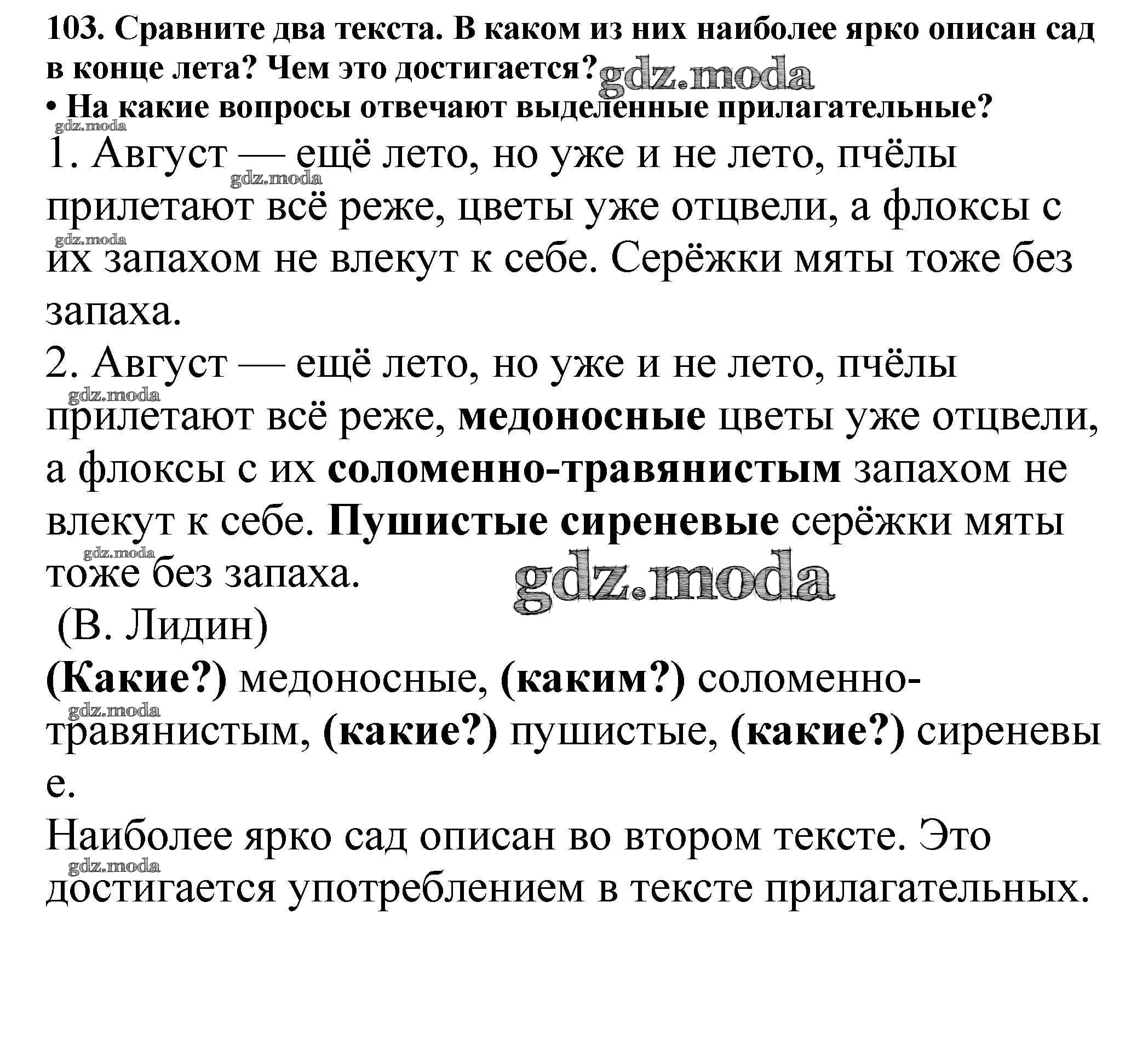 ОТВЕТ на задание № 103 Учебник по Русскому языку 5 класс Баранов