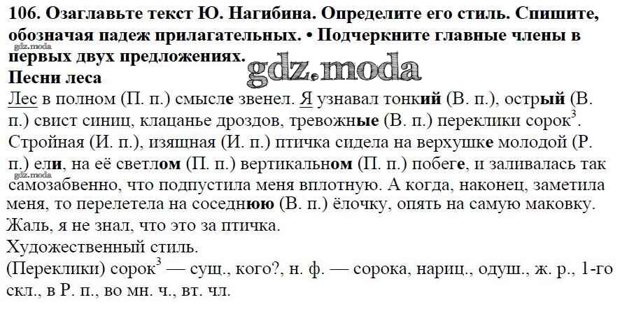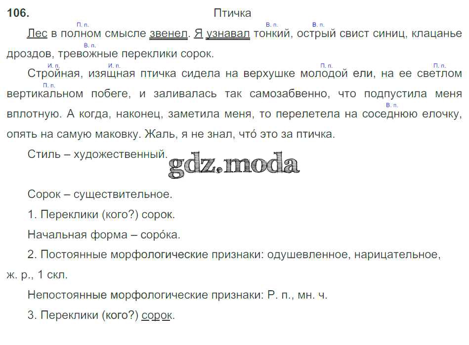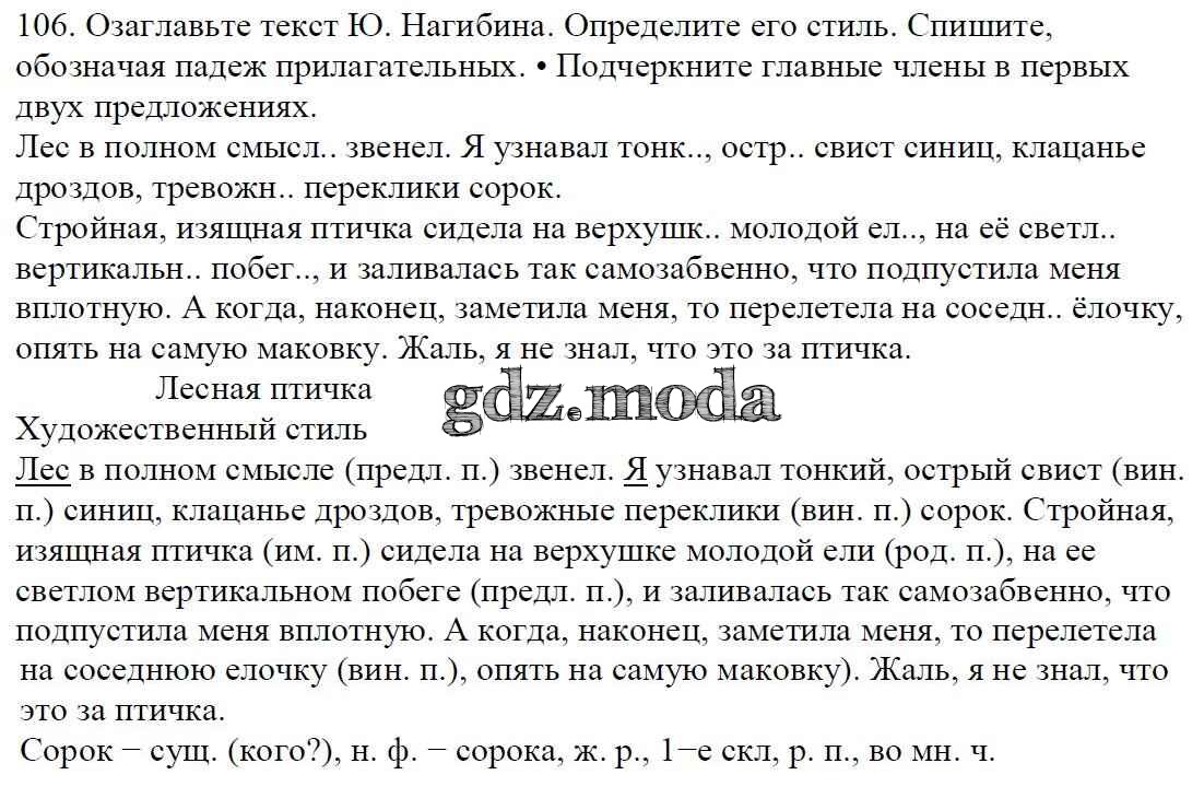ОТВЕТ на задание № 106 Учебник по Русскому языку 5 класс Баранов
