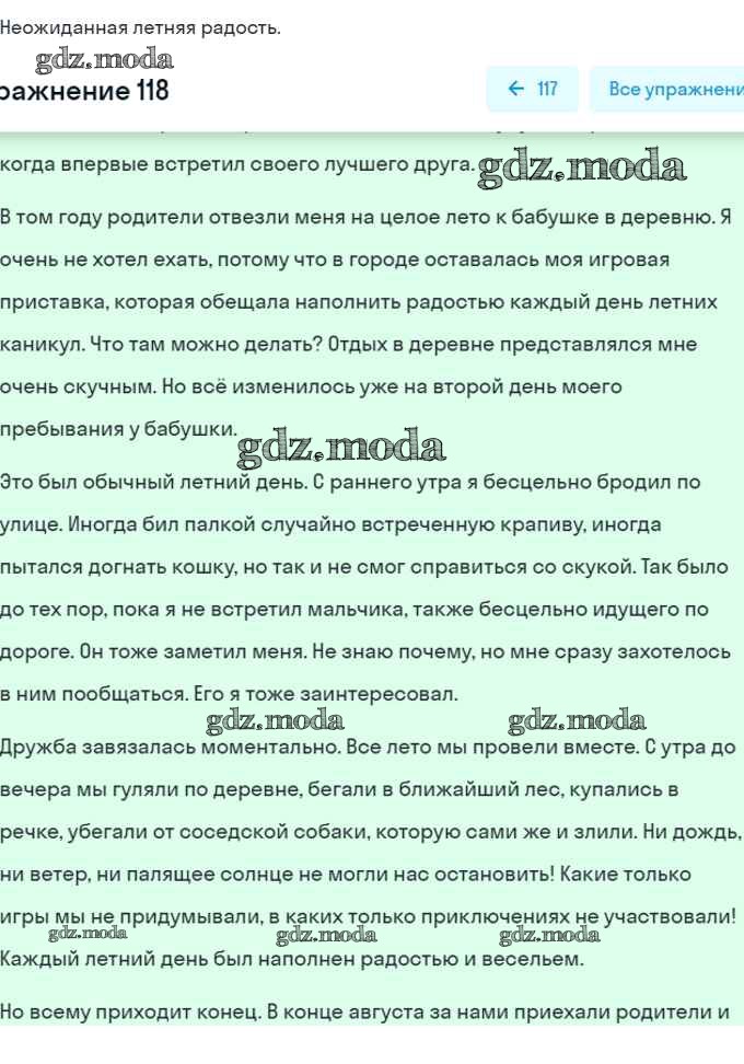 ГДЗ решение к заданию № 118 Русский язык 5 класс Ладыженская Т.А. Просвещение, Просвещение 2016, 2019 Часть 1, Часть 2 ФГОС бесплатно на гдз.мода!