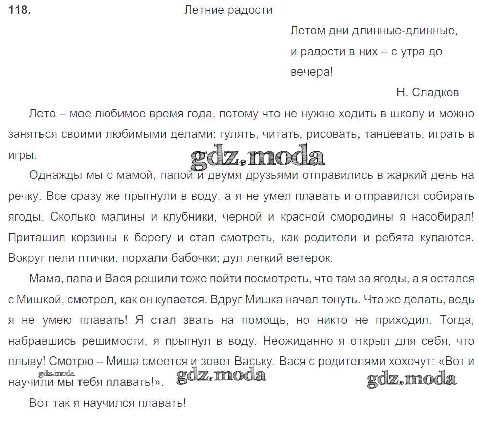 ОТВЕТ на задание № 118 Учебник по Русскому языку 5 класс Баранов