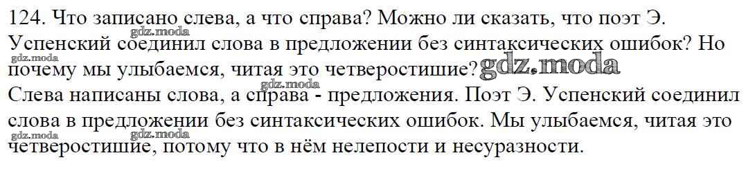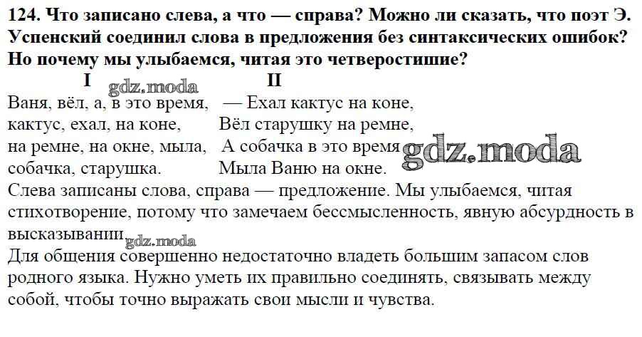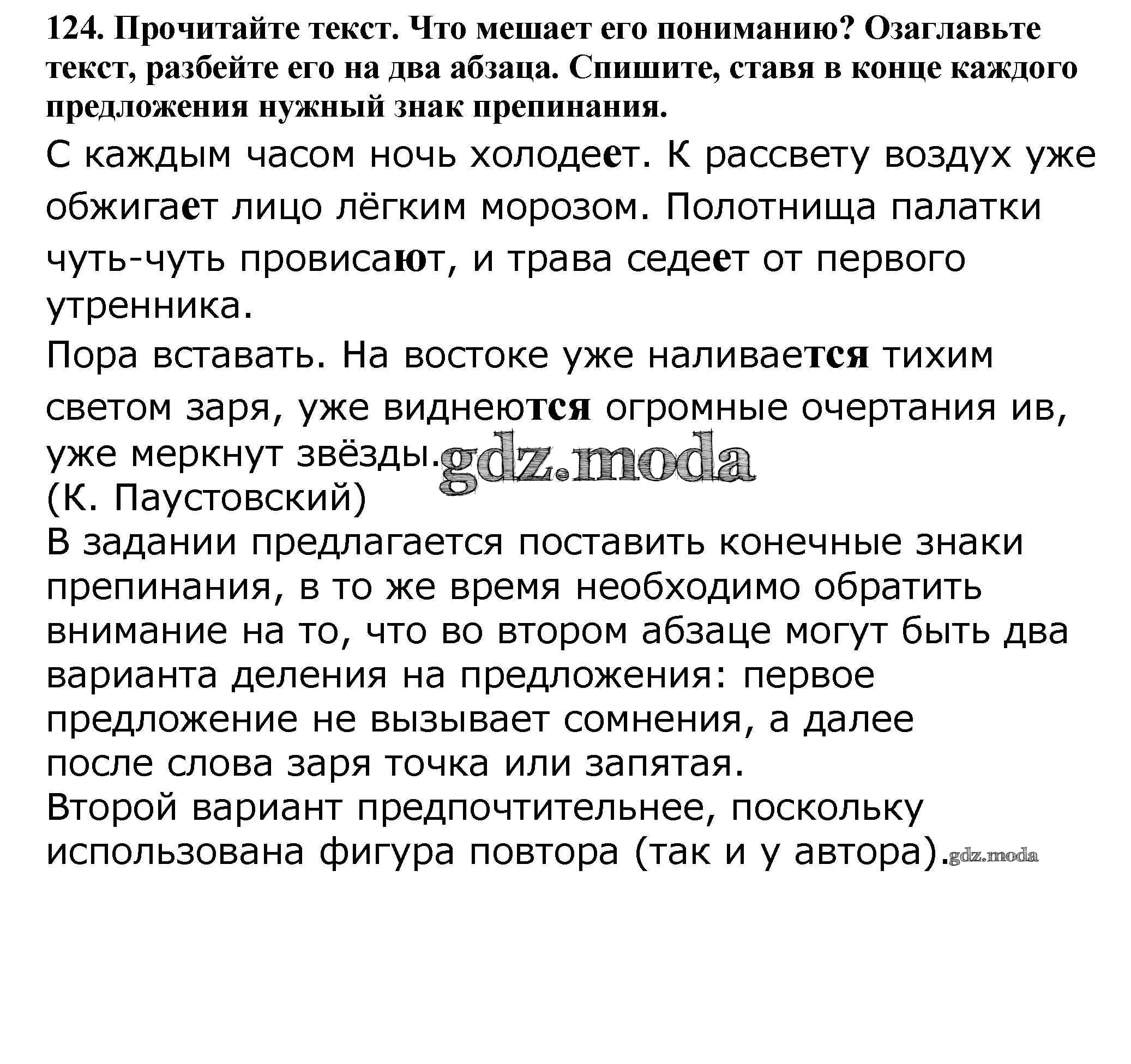 ОТВЕТ на задание № 124 Учебник по Русскому языку 5 класс Баранов