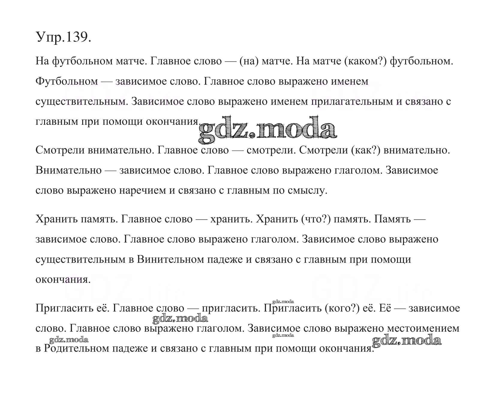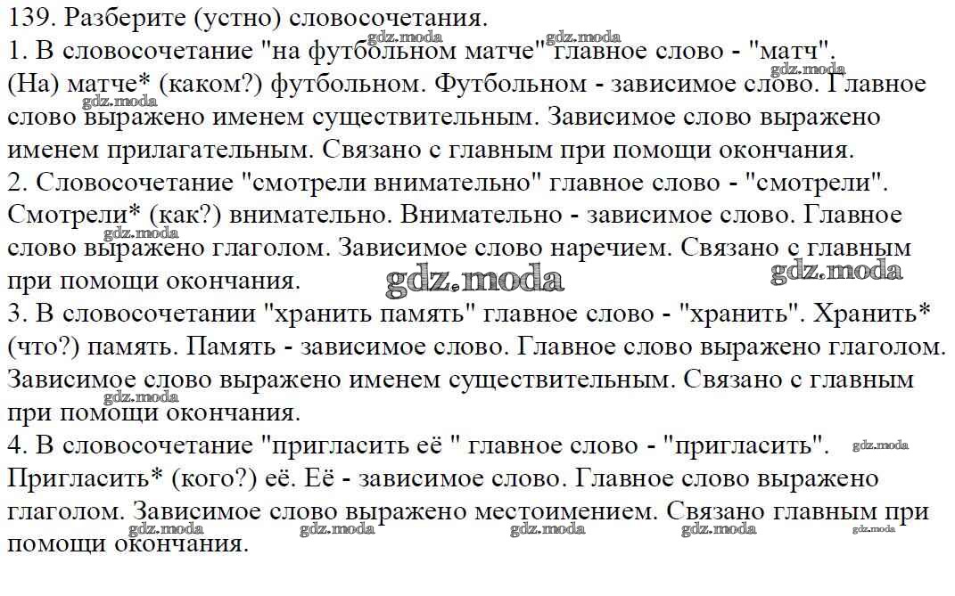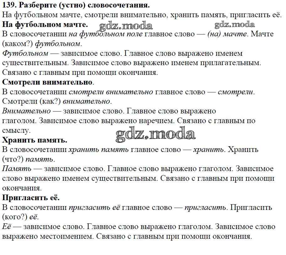 ОТВЕТ на задание № 139 Учебник по Русскому языку 5 класс Баранов