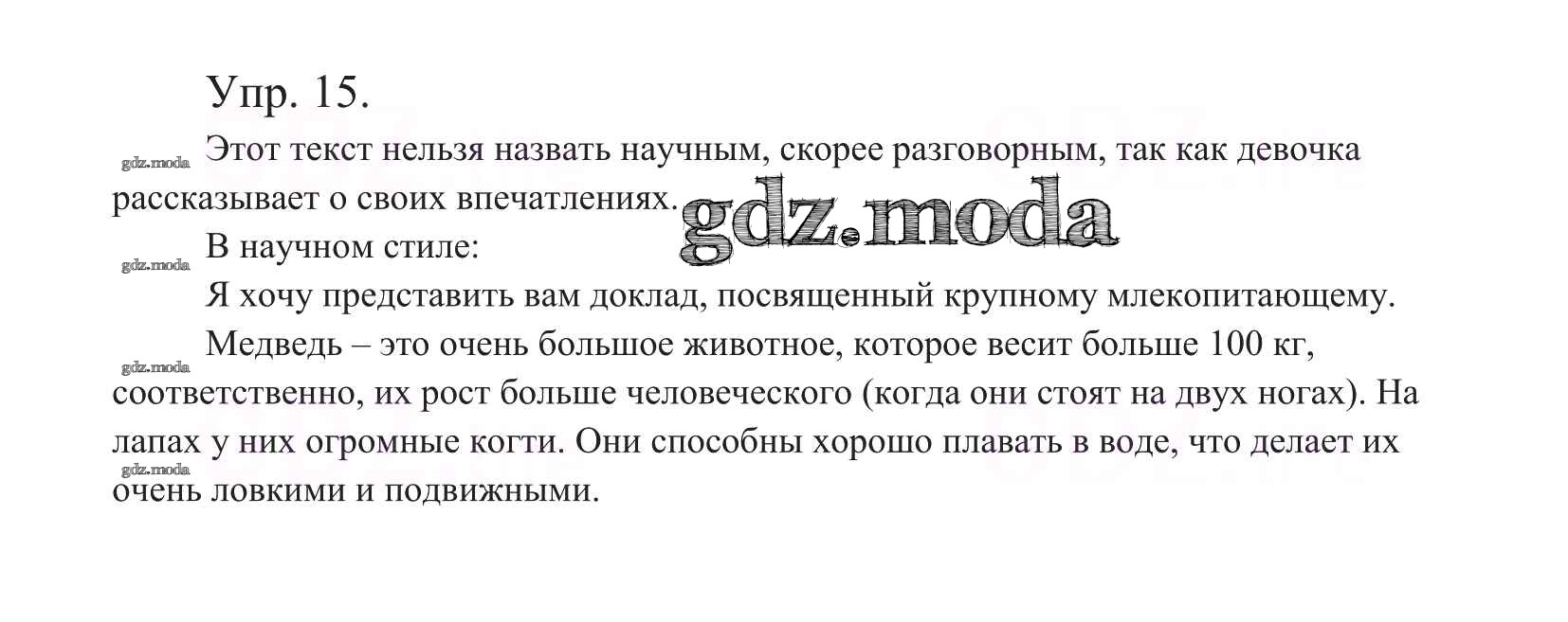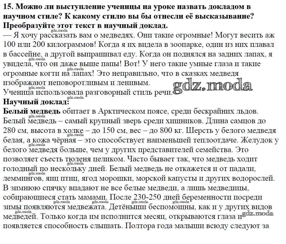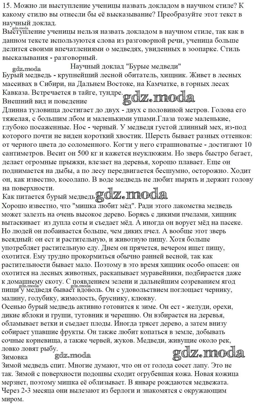 ОТВЕТ на задание № 15 Учебник по Русскому языку 5 класс Баранов