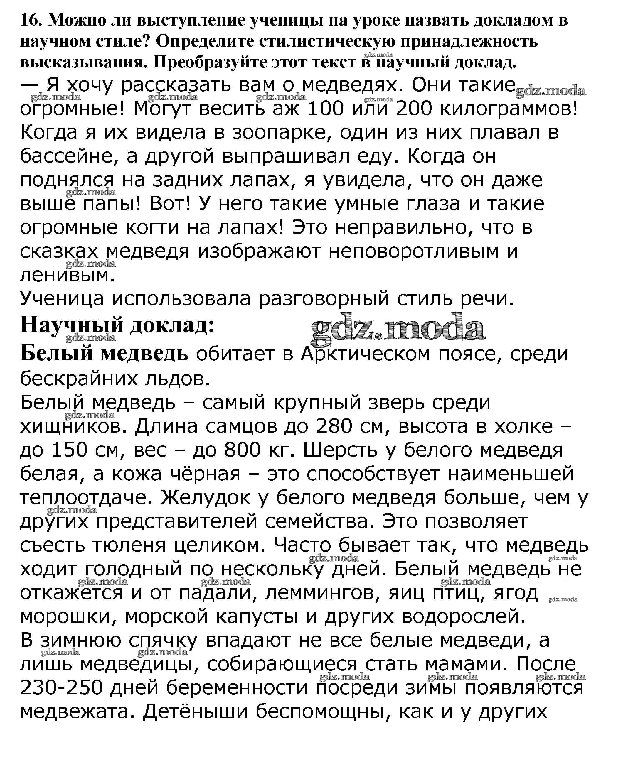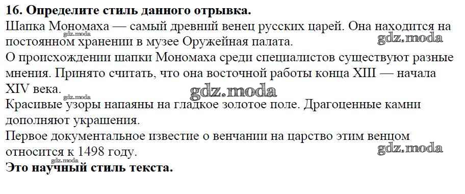 ОТВЕТ на задание № 16 Учебник по Русскому языку 5 класс Баранов