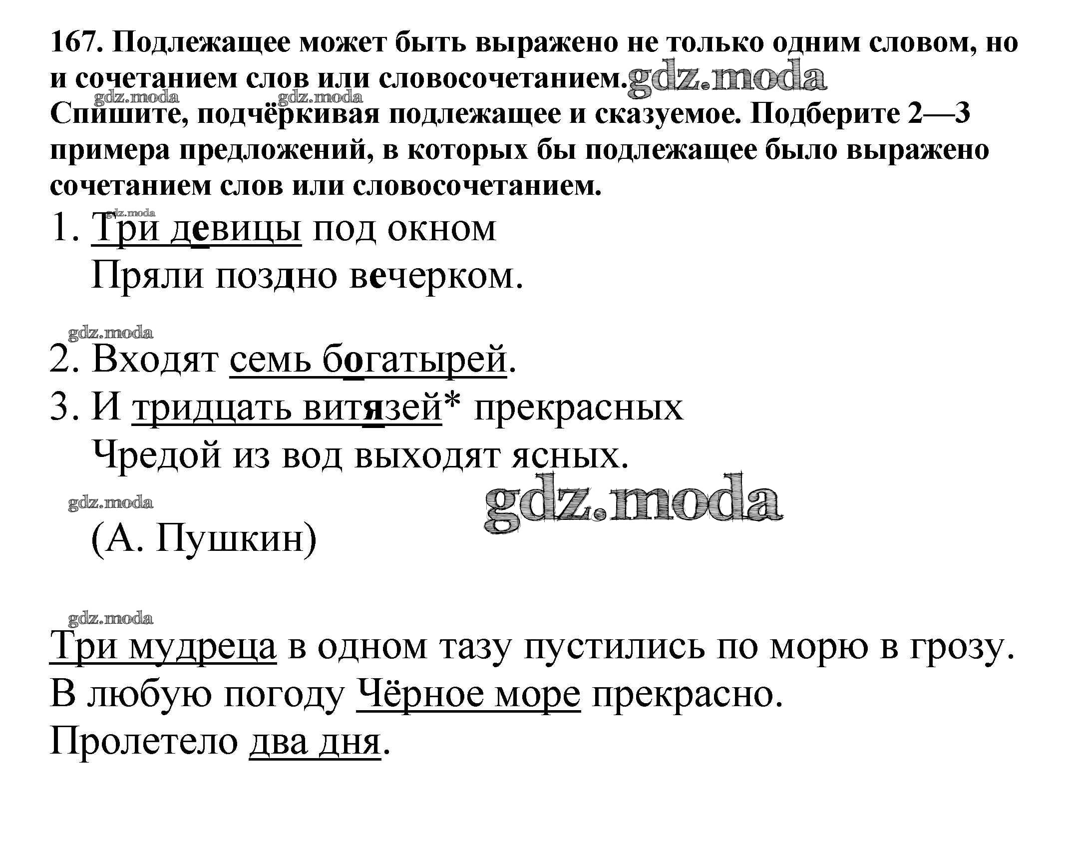 ОТВЕТ на задание № 167 Учебник по Русскому языку 5 класс Баранов