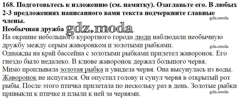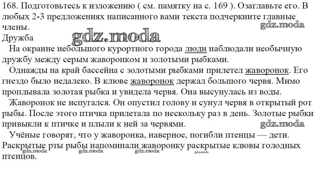 ОТВЕТ на задание № 168 Учебник по Русскому языку 5 класс Баранов