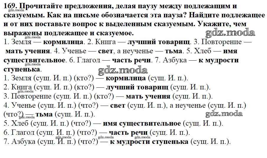 ОТВЕТ на задание № 169 Учебник по Русскому языку 5 класс Баранов