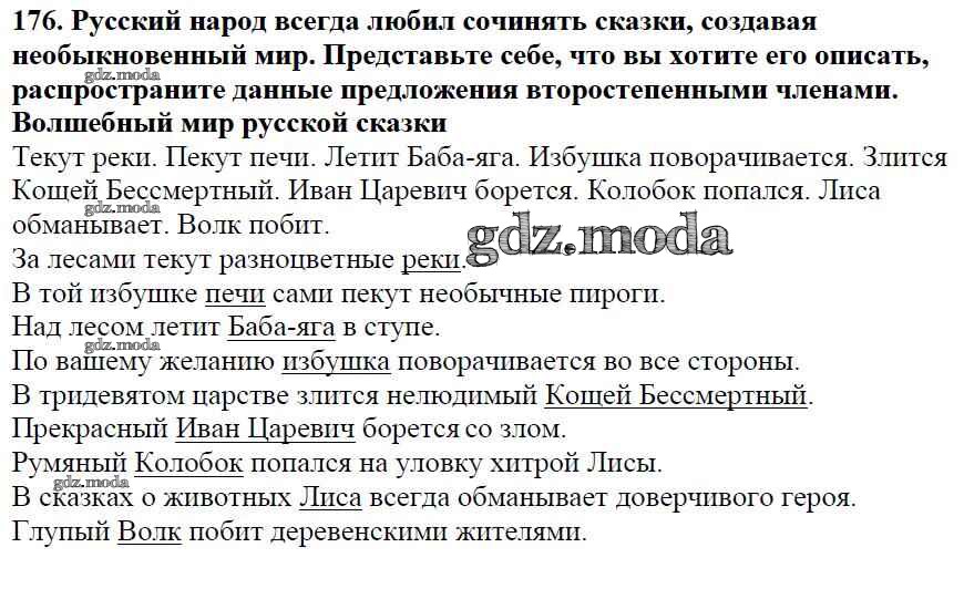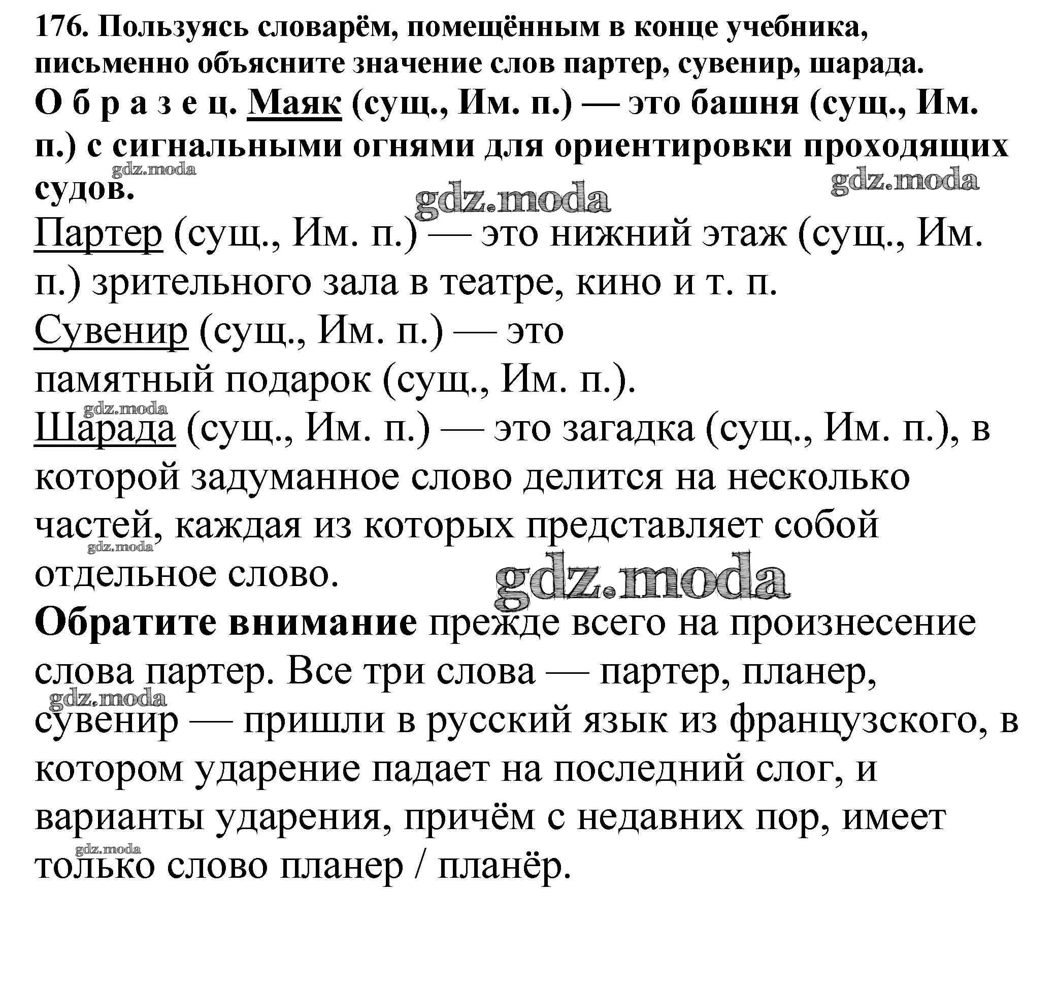 ОТВЕТ на задание № 176 Учебник по Русскому языку 5 класс Баранов
