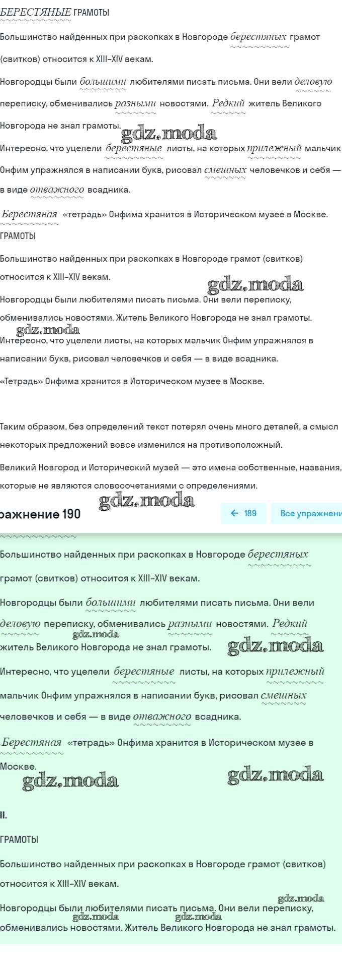 ГДЗ решение к заданию № 190 Русский язык 5 класс Ладыженская Т.А. Просвещение, Просвещение 2016, 2019 Часть 1, Часть 2 ФГОС бесплатно на гдз.мода!
