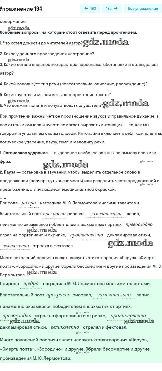 ОТВЕТ на задание № 194 Учебник по Русскому языку 5 класс Баранов
