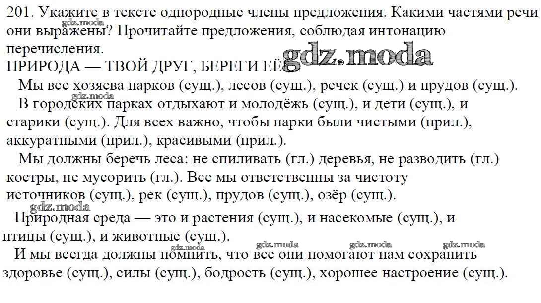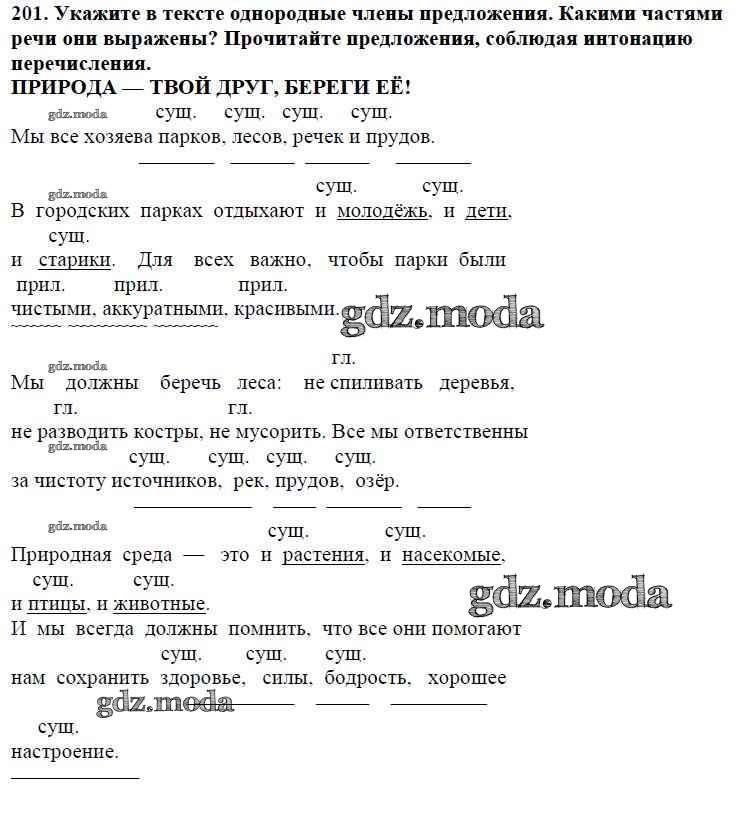 ОТВЕТ на задание № 201 Учебник по Русскому языку 5 класс Баранов