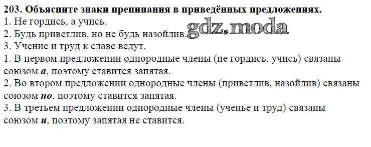 ОТВЕТ на задание № 203 Учебник по Русскому языку 5 класс Баранов