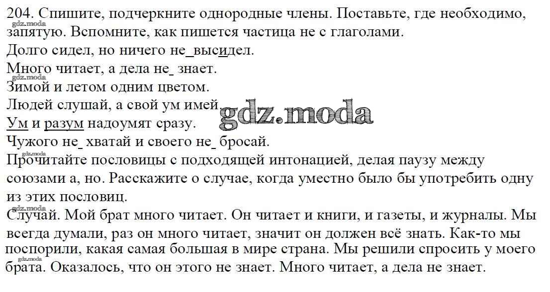 ОТВЕТ на задание № 204 Учебник по Русскому языку 5 класс Баранов