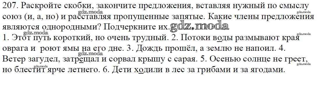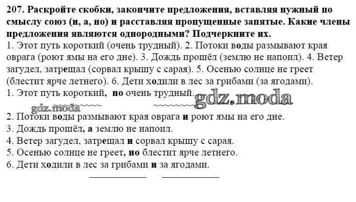 ОТВЕТ на задание № 207 Учебник по Русскому языку 5 класс Баранов